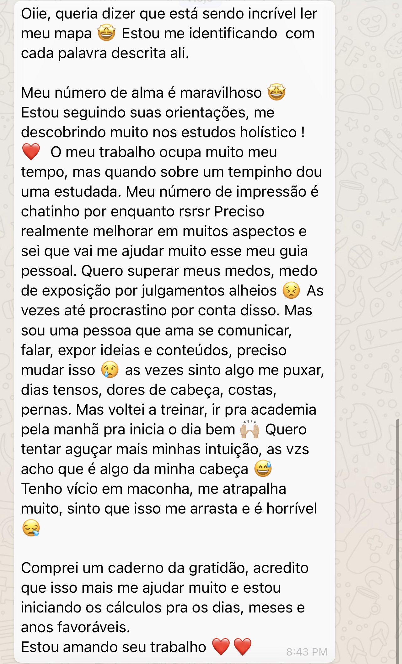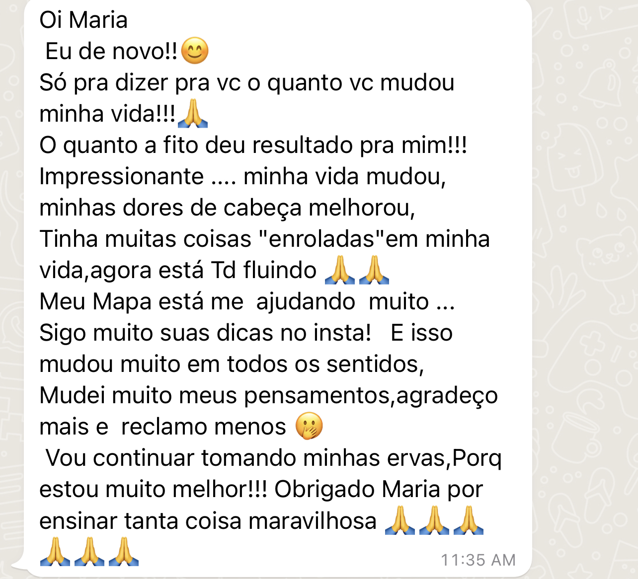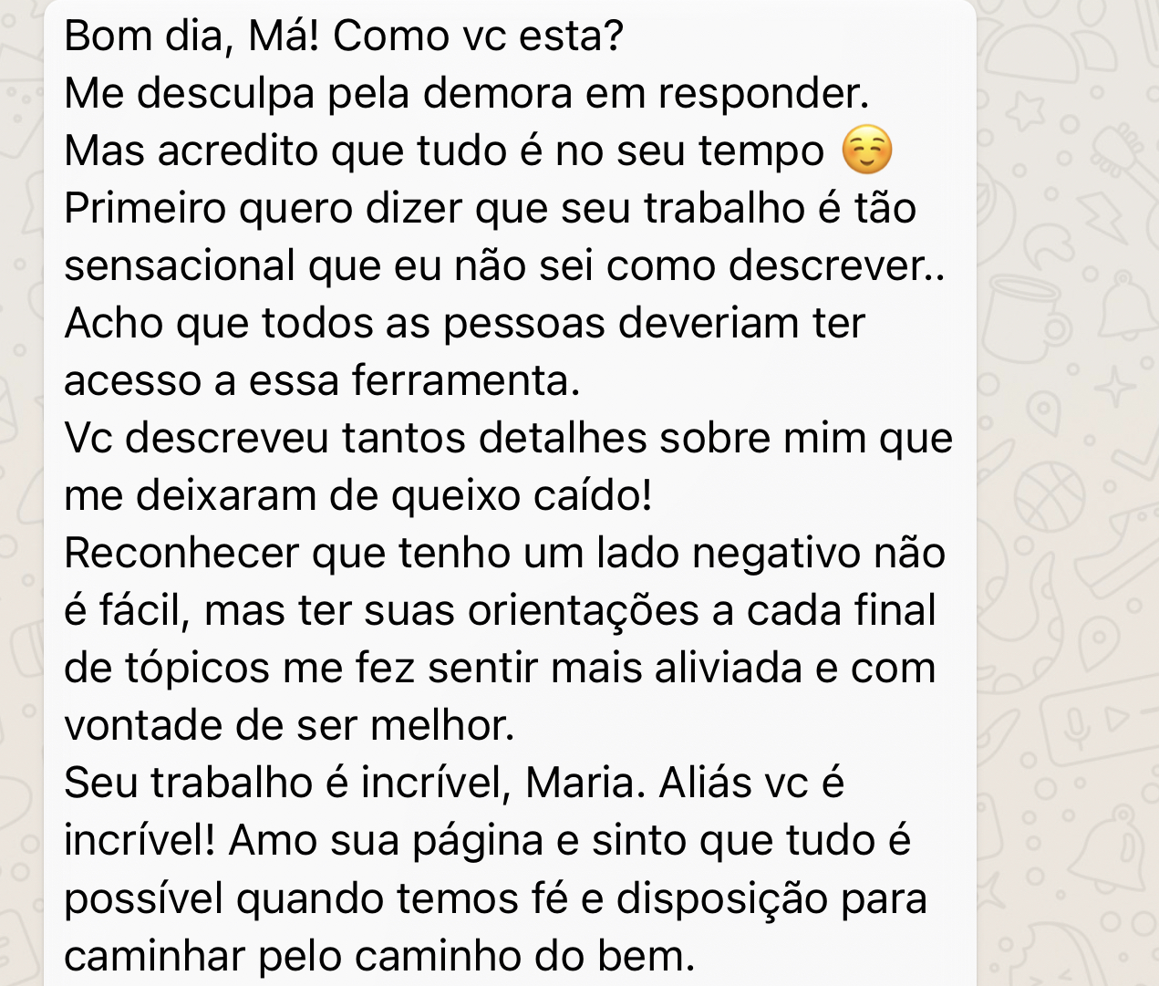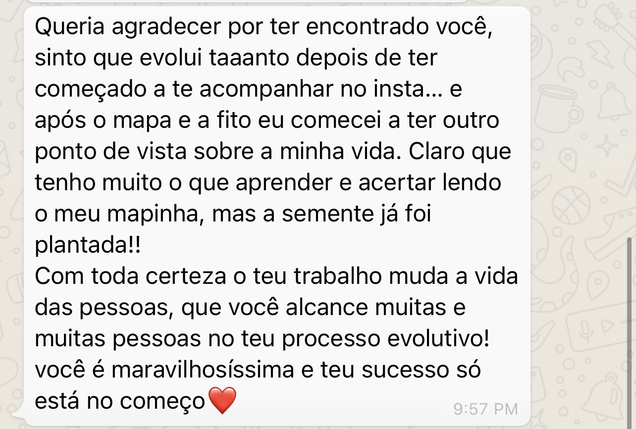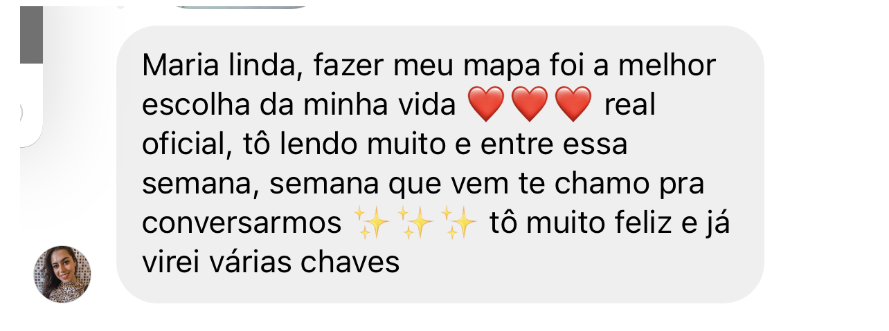 Com mais de 5 mil clientes satisfeitos e transformados, Maria se destaca pela dedicação e cuidado em cada Mapa, garantindo uma experiência única e profunda. Cada análise que ela realiza é feita com o propósito de abrir portas, trazendo clareza e empoderamento para você conquistar tudo o que merece.